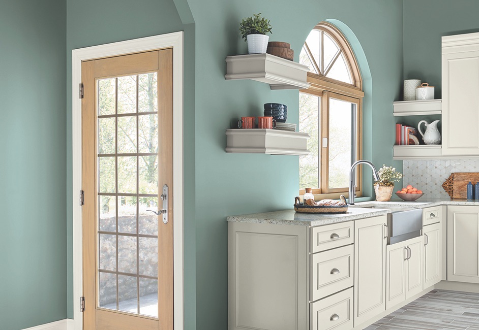 Behr’s Color of the Year is in the Moment (T18-15). According to the color experts, “this comfortable color evokes a sense of sanctuary and relaxation amid our busy, always-on lives.” Behr says this cool, tranquil, spruce blue is inspired by nature and is a soothing, restorative coalescence of blue, gray and green.