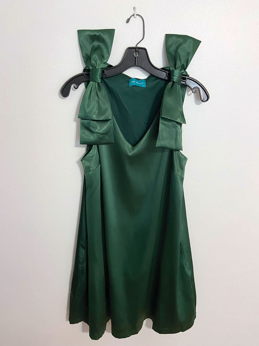 • Satin enhances jewel tones like emerald green for an elevated look that’s not too bougie.