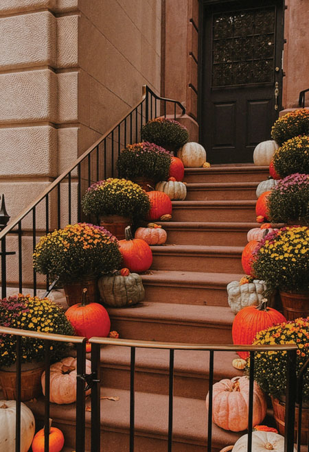 Pro tip: Group pumpkins in odd numbers (3, 5, 7) for an arrangement that feels natural and balanced.