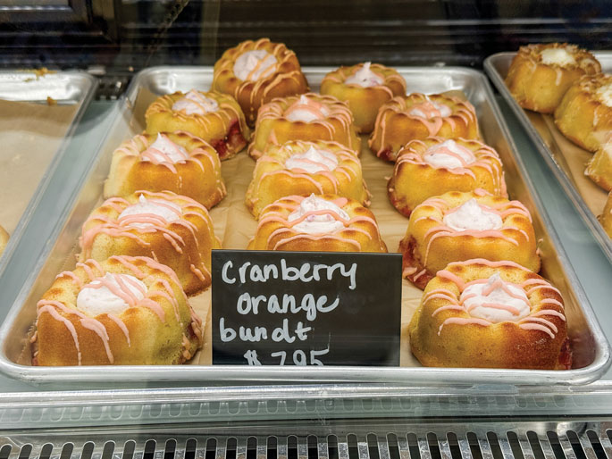 The top seller is the lemon blueberry poundcake: a picture-perfect coffee-table slice. There’s also “sex in a pan,” a layered bar with just the right snap and creaminess, and the brand-new Butterfinger bar, which started as an accident. Someone grabbed cheesecake flavor instead of vanilla and created a better version by mistake.