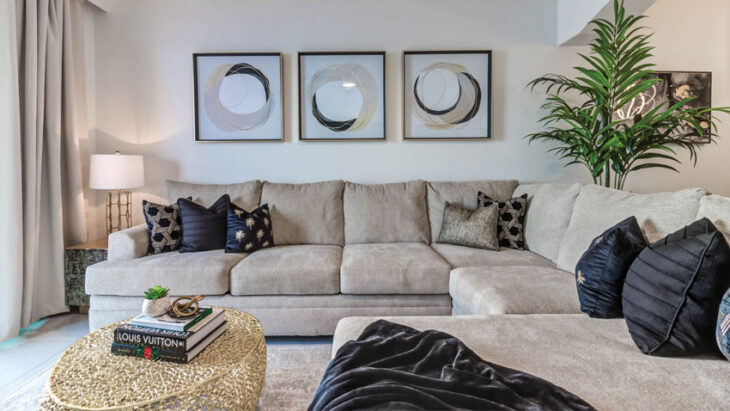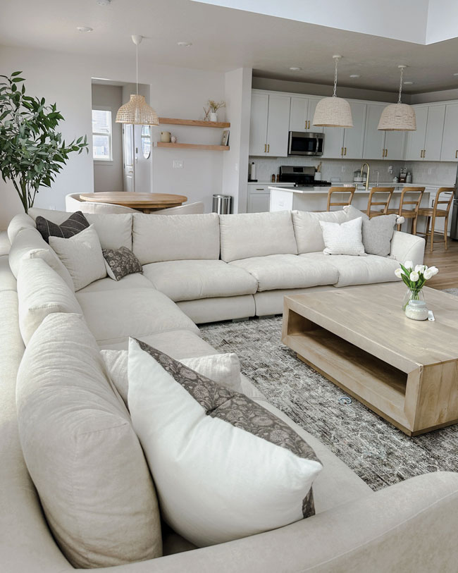 - Stain-resistant sofas in soft tones