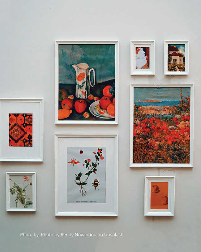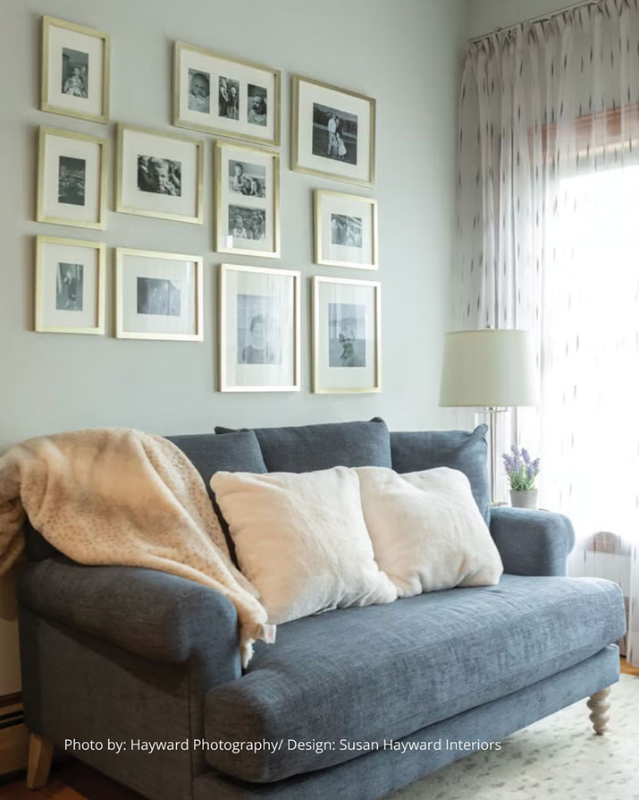 - A gallery wall of family photos in consistent frames