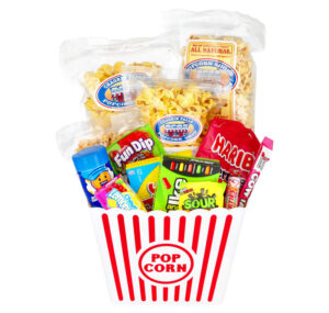 Include a streaming gift card, cozy blanket, popcorn and candy. These baskets are simple, but always a hit.